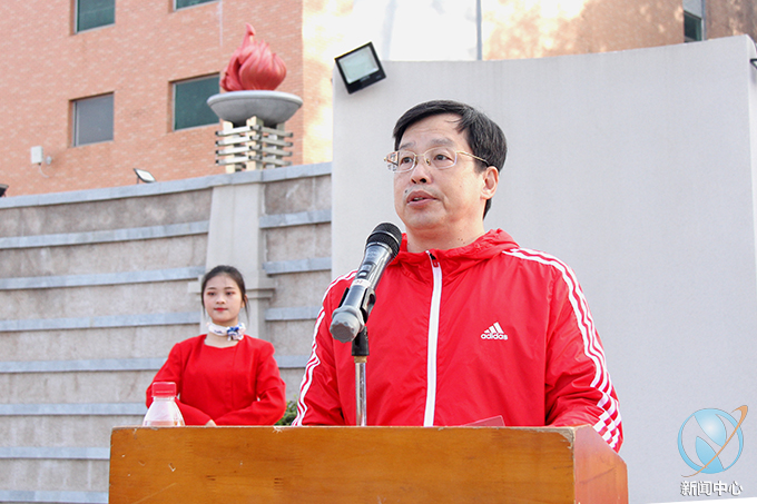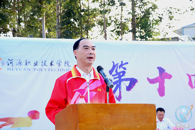 入场仪式结束后,韦荣书记上台致辞。韦书记首先感谢对本次校运会筹备工作付出辛勤劳动的全校师生。他表示,我校认真学习贯彻习近平总书记在2018年全国教育大会中的讲话,高度重视体育工作,发展体育运动,增强师生体质,丰富校园文化生活,在各方面的体育事业中不断取得建设性的育人成果。他希望全体运动员们大力弘扬“更快、更高、更强”的奥林匹克精神,发扬不畏艰难、团结协作、勇于挑战对手、勇于超越自我的体育精神,赛出风格、比出水平。