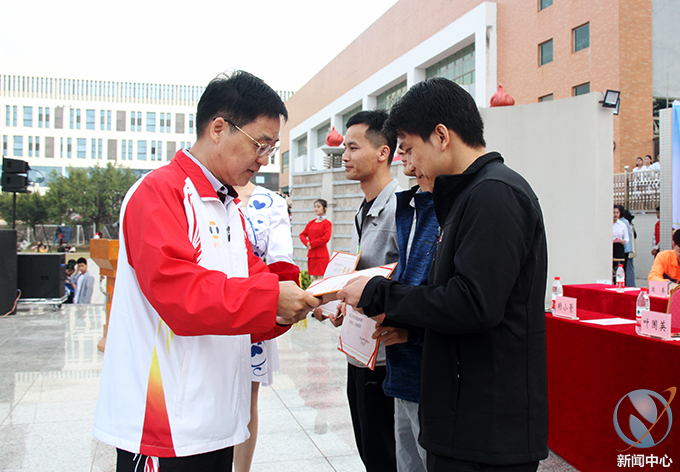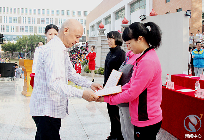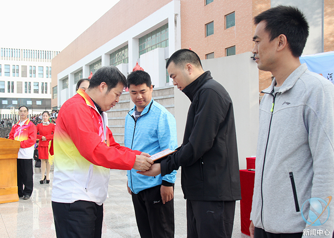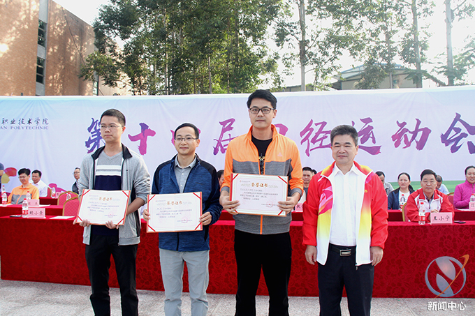 在正式开始本届运动会赛事前,我校为此前教工球类项目进行颁奖仪式,我校唐汉芳副校长、叶国英副书记、陈农心副校长、王小宁副校长分别为教工气排球男子组、教工气排球女子组、教工男子篮球、教工羽毛球等比赛获奖队伍进行了颁奖。