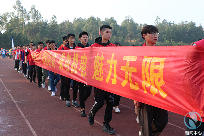 迎着初升的太阳,开幕式在各队伍方阵队入场仪式中拉开序幕。一个个穿着靓丽衣服、踏着整齐划一步伐的师生队伍向主席台大踏步走来。现场气氛热火朝天,方阵队伍的口号声与看台中的呐喊声融为一体,展现出我校青春蓬勃的大学生风采。
