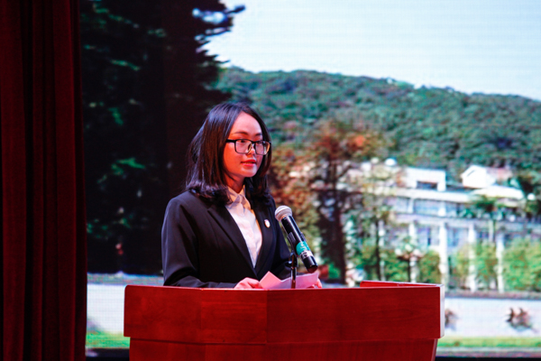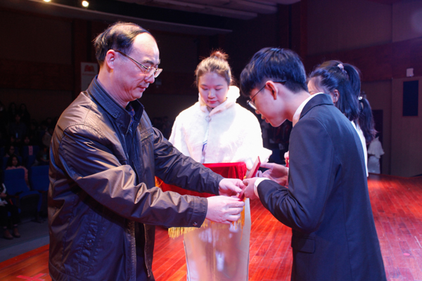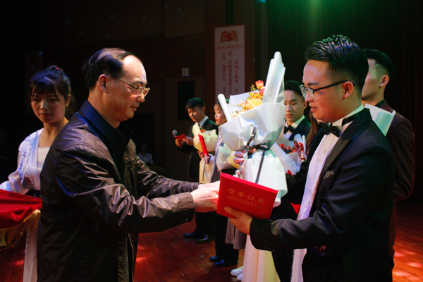此外,本次大赛的知识竞答内容以改革开放四十周年历史为主,赖小景副校长担任主评委身份为选手以及现场观众解答,介绍了改革开放四十周年的革命伟人以及相关事件,精彩互动的环节将现场气氛推向高潮。经过四轮的激烈角逐,最终2号选手刘源成功夺冠,4号选手刘志权、3号选手韦淑仪分别荣获亚、季军。谢昉柱主任,赖小景副校长,黄建华主任先后为获奖选手颁奖。最后,本次活动在全体人员合影留念中圆满拉下了帷幕。