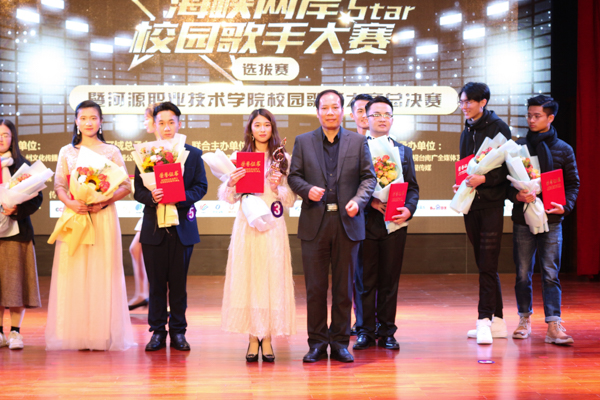 为庆祝改革开放40周年,《告台湾同胞书》发表40周年,12月12日晚,以“两岸一家亲,共圆中国梦”为主题的台湾知识进校园系列活动闭幕式暨海峡两岸校园歌手大赛选拔赛——必一手机登录入口2018年校园歌手大赛总决赛于我校艺术楼演播厅隆重举行。河源市人民政府台湾事务办公室主任谢昉柱,学校副校长赖小景,学校党委委员、党政办主任黄建华,校团委书记陈晓峰,河源市人民政府台湾事务办公室副调研员蓝国平,艺术与设计学院院长杜伟祥,校团委副书记黄志鹏、王波,河源理工学校团委书记钟燕龙,河源市卫生学校团委老师叶红艳、河源市开放大学团委老师曾可,河源市人民政府台湾事务办公室相关领导,我校各二级团总支书记,歌手大赛组委会评委老师以及我校九大组织、学院学生代表均出席了此次活动。我校团委陈晓峰书记担任本次活动主持。