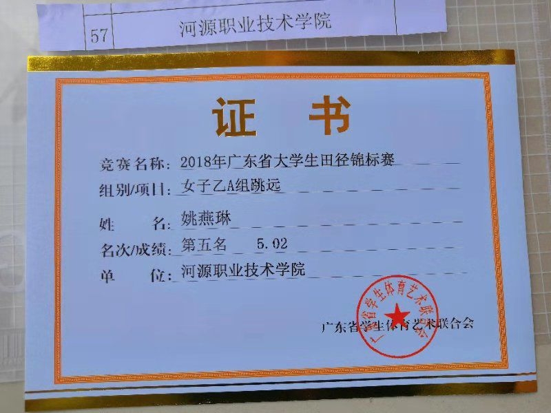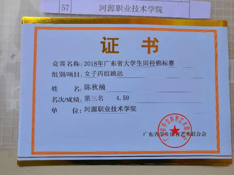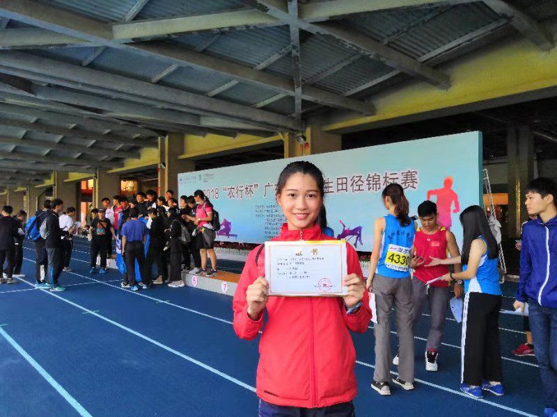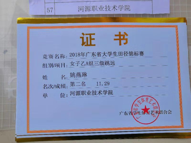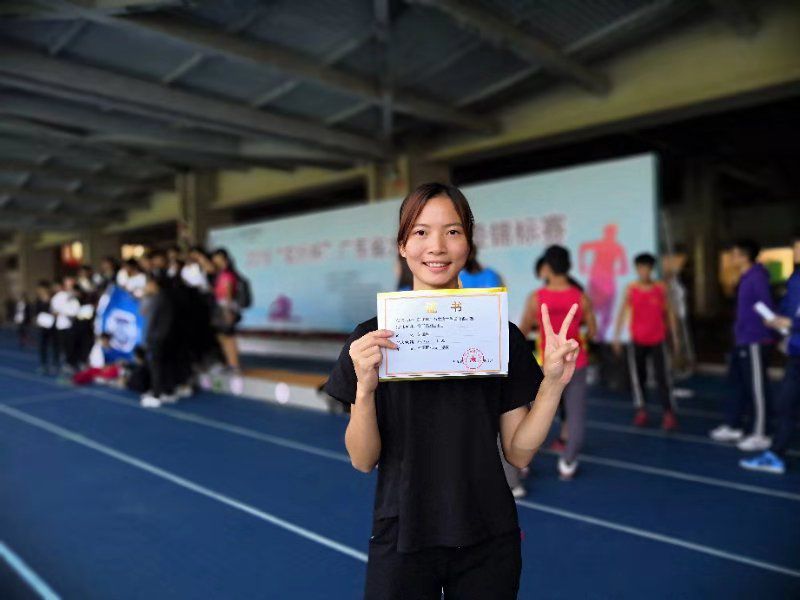 在刚刚结束的2018年广东省大学生田径锦标赛中,我校体育教育专业姚燕琳同学,不畏全国名校广州体院等学校强手,以11.29米和5.02米斩获乙A组女子三级跳远亚军,以及跳远第五名的好成绩;体育健儿陈秋楠同学收获了丙组女子跳远季军!