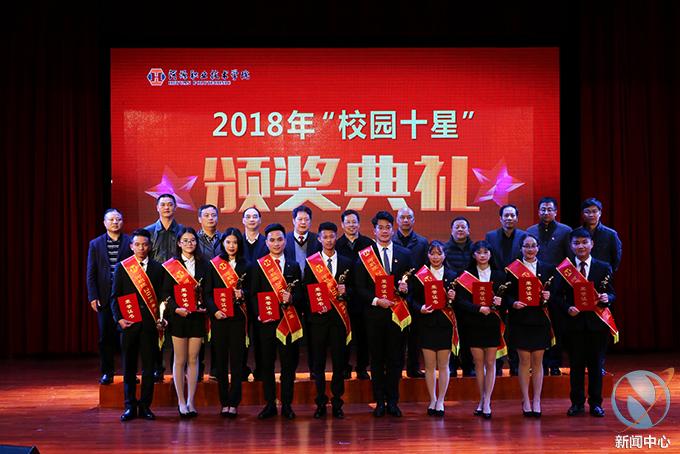 12月28日晚,我校于艺术楼演播厅举行2018“校园十星”颁奖典礼。我校领导班子成员,各处室、各院部负责人及各学院学生代表参加了此次颁奖典礼。