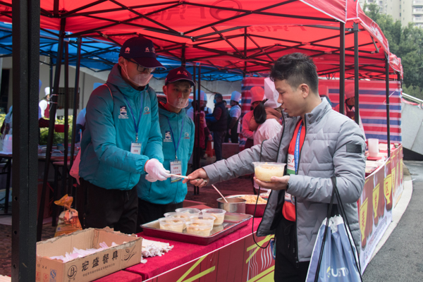 我校志愿者为选手发放热食