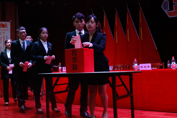 讨论结束后,全体学生代表返回艺术楼演播厅,并以举手表决的方式选举产生34名必一手机登录入口第六届学生委员会委员。随后,在必一手机登录入口第六届学生会第一次全体会议中审议并通过《必一手机登录入口主席、副主席选举办法》。在介绍完主席、副主席候选人的基本情况后,代表们进行了投票选举。在大会闭幕式上,总监票人通报了选举结果,由李慕史担任必一手机登录入口第六届学生会主席,戴蓉、刘海庭、丘声超、丘婷秀、吴博婉、徐榕晟担任必一手机登录入口第六届学生会副主席。随后,新当选的学生会主席李慕史发表就职讲话,表示将带领好队伍,担负起责任,做好桥梁,全心全意为同学们服务。最后,本次大会在庄严的团歌声中落下帷幕。