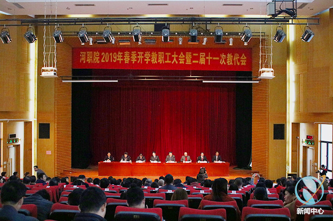 2月26日下午,在庄严的国歌声中,我校2019年春季开学教职工大会暨第二届教职工代表大会第十一次会议在图书馆学术报告厅拉开帷幕。校长陈德清代表学校行政向大会作《学校工作报告》。副校长赖小景主持会议并宣布大会开幕。全体校领导出席会议并在主席台就座。