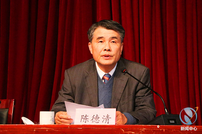 陈德清在报告中实事求是地回顾和总结了2018年学校工作及取得的成绩。他指出,2018年,在省委教育工委、省教育厅和市委、市政府的正确领导下,学校高举习近平新时代中国特色社会主义思想伟大旗帜,深入学习宣传贯彻党的十九大精神和习近平总书记视察广东重要讲话精神,紧紧抓住河源建设“示范区”“排头兵”,积极融入粤港澳大湾区的战略机遇,积极推进教育教学改革,着力提升办学质量和水平,圆满完成了年度各项工作任务。在总结成绩的同时,陈德清指出了学校发展中存在的不足,分析了当前学校面临的机遇和挑战,提出了2019年学校要站在新的起点上扬帆起航,要推动学校内涵发展再上新台阶,要从12个方面全面加强各项工作。陈德清强调,要继续高举习近平新时代中国特色社会主义思想伟大旗帜,深入学习贯彻习近平总书记视察广东讲话精神,在新一届党委班子的集体领导下,坚持党的领导不动摇,坚持教育教学改革不动摇,坚持“规则意识、责任良知”不动摇,坚持“省内一流,国内领先”不动摇,聚精会神、凝心聚力、扎实工作、奋勇拼搏,不断推动学校各项事业迈上新台阶。