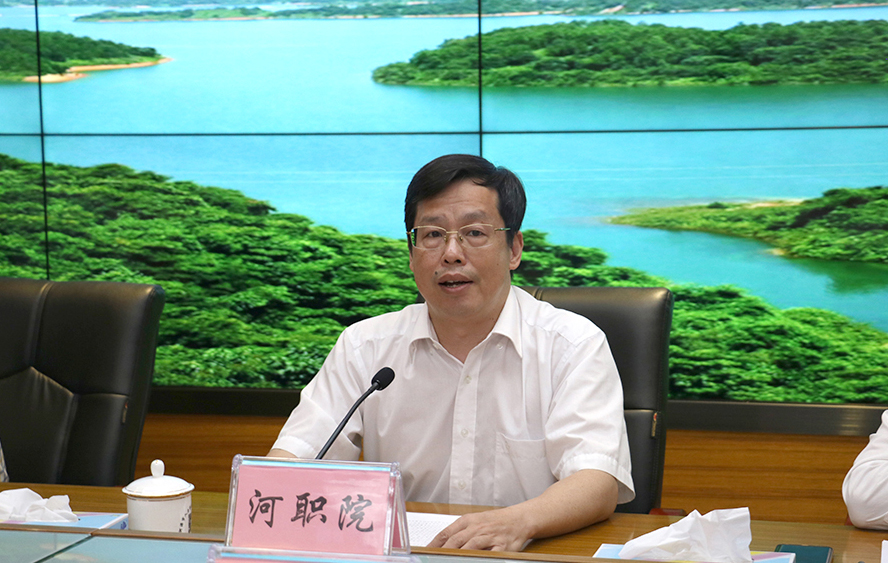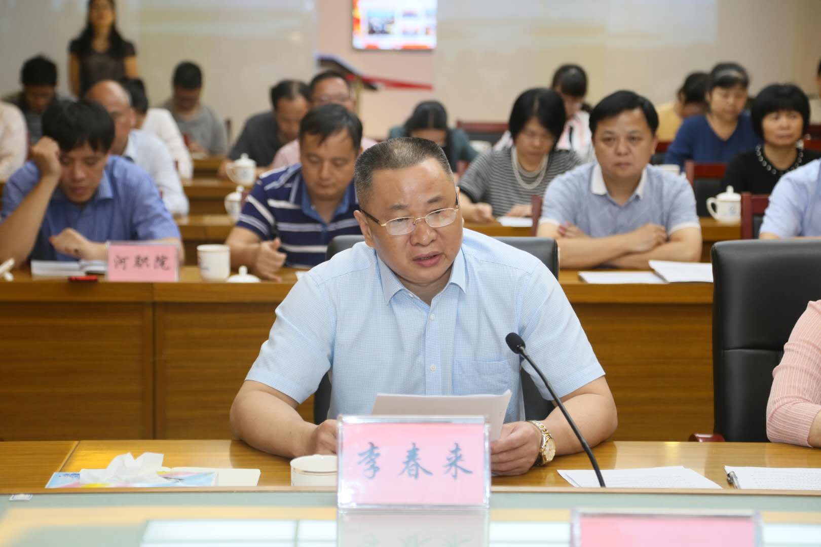 校党委书记韦荣发言,他首先代表学校对李春来教授的获奖表示祝贺,随后他分享了我校在高层次人才引进、培养和服务的措施办法。最后,他表示学校将一如既往做好人才培养工作,继续加强高层次人才队伍建设,为高层次人才队伍的发展提供扎实的平台与支撑,为河源全面全域融入粤港澳大湾区提供强有力的人才支持和智力保障。