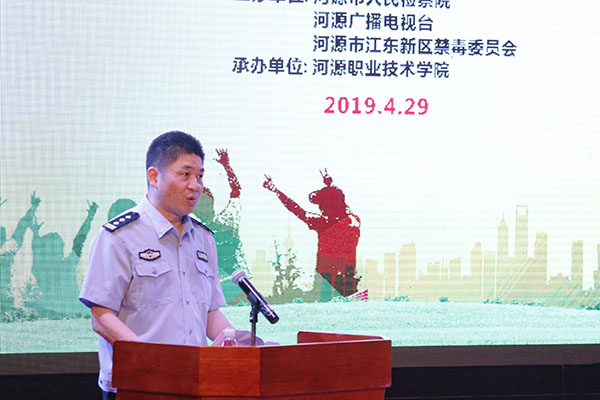 为深入学习领会、贯彻落实习近平总书记关于禁毒工作的系列重要指示精神,切实提高青少年学生识毒、防毒、拒毒的意识和能力。4月29日晚,河源市人民检察院联合必一手机登录入口、河源市广播电视台、河源市江东新区禁毒委员会于我校艺术楼演播厅隆重举办以“珍爱生命 远离毒品”为主题的法治宣传教育活动。我校党委副书记、纪委书记叶国英,河源市人民检察院党组成员、副检察长陈润泽,河源广播电视台副台长廖晓棠,河源市禁毒委员会办公室专职副主任、河源市公安局禁毒支队支队长叶新添,江东新区党委委员、管委会副主任、禁毒委副主任、河源市公安局江东分局局长袁作平,河源市人民检察院检察官黄莉,我校团委书记陈晓峰,我校团委副书记黄志鹏,以及河职院各二级学院团总支书记,学生代表参加了本次活动。活动由陈晓峰书记担任主持。