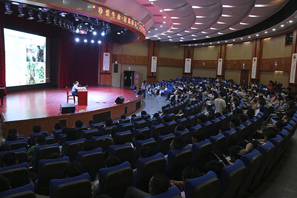 紧接着,黄莉检察官以《珍爱生命,远离毒品》为题给全体人员授课。在课上,黄莉检察官首先以“什么是毒品”“法律禁止什么样的涉毒行为”“你了解毒品的‘危害’吗”三个问题展开课程,并通过结合PPT、小视频,以图文并茂的方式,为全体人员围绕毒品的“昨天与今天”、“模样”、“距离”三个内容进行阐述。其中,黄莉检察官用多个毒品犯罪事例和法律条例直观地向全体师生们宣传毒品的危害性和非法性。课程最后,黄莉检察官表示,广大青少年要远离危险的娱乐场所;坚决抵制毒品,对毒品说“不”;不轻信他人;不听信鼓吹并树立正确的价值观、人生观。