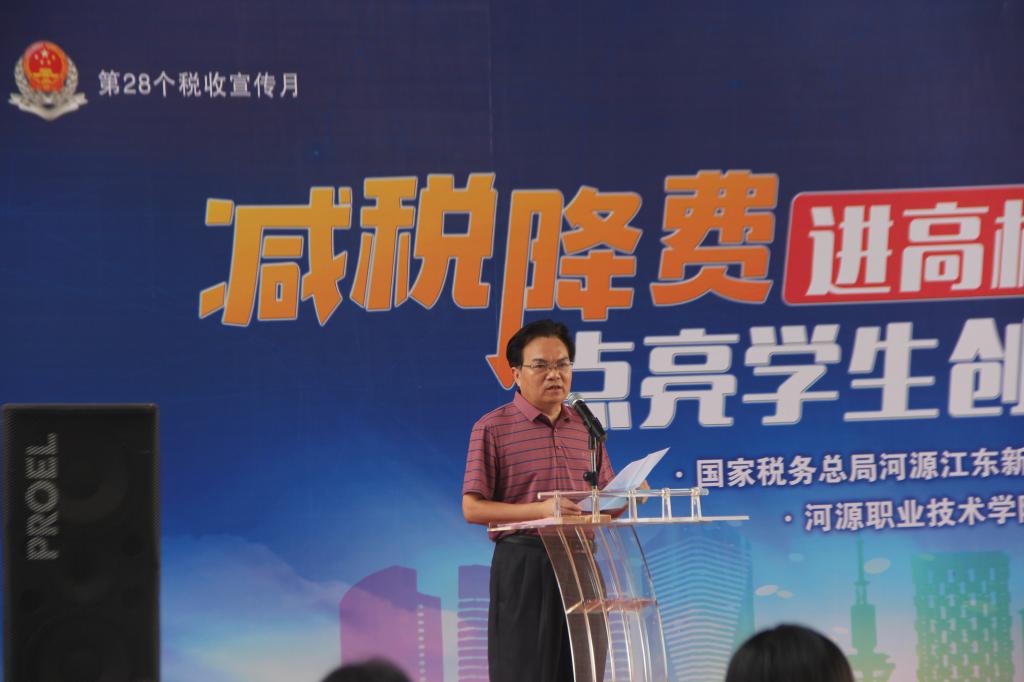 学工处就业指导中心负责人为活动进行了致辞,指出我校历来重视对大学生创新创业的宣传与支持,希望学生们能多了解国家针对大学生创业者的税收优惠政策,坚守创业道路的信心;积极了解税务知识,学习税法,了解税法,形成依法纳税、诚信纳税的良好意识。