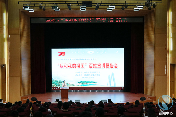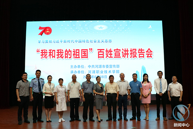 6月18日下午,我校在图书馆报告厅举行河源市“我和我的祖国”百姓宣讲报告会,学校党委书记韦荣,党委副书记、纪委书记叶国英,党委委员、宣传部长赖新优,我校师生约400人出席了本次报告会。省委宣传部讲师团副团长潘朝晖、任夏泽和主任亲临指导,报告会由中共河源市委宣传部主办,必一手机登录入口承办。