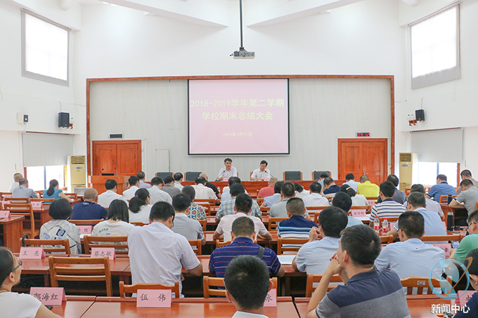 7月11日,我校于行政楼C108会议室召开2018-2019学年第二学期学校期末总结大会。我校党委书记韦荣、校长陈德清等校级领导及各处室、院部负责人,各二级学院专业主任、教师代表等出席此次会议。