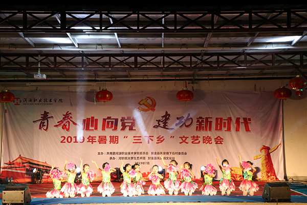 7月21、22日晚,我校分别于紫金县凤安镇下石村文化广场及龙川县新田镇中学举行2019年暑期“三下乡”社会实践活动文艺晚会。新田镇党委书记骆志全,镇长刁洪平,人大主席王汉华,紫金县凤安镇武装部部长张奕文,工商管理学院院长俞彤,我校团委书记陈晓峰,校团委副书记黄志鹏,我校“三下乡”社会实践活动带队老师谢国栋等领导分别出席了本次晚会。此外,下石村村干部,下石村村民,下石小学学生,新田镇的父老乡亲及我校下石村“三下乡”志愿者、工商学院“三下乡”社会实践团全体志愿也一同观看了本次晚会。