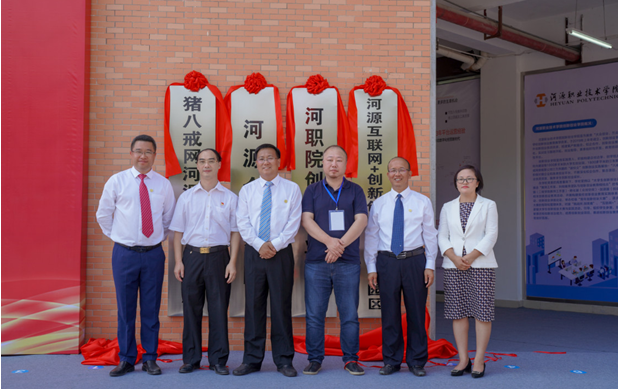 ▲揭牌嘉宾:必一手机登录入口党委委员、副校长赖小景(左二),河源江东新区党委书记孔德胜(左三),猪八戒网副总裁杜春永(右三),河源江东新区党委副书记巫志宏(右二),河源江东新区党委委员、管委会副主任疏纲(左一),猪八戒网广东大区总经理赵跃辉(右一)