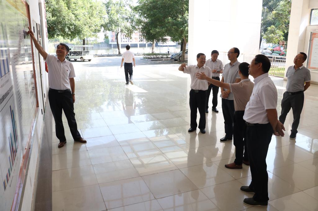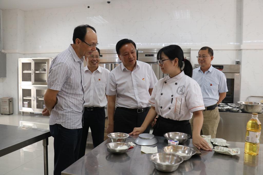刘鸣组长一行先后参观了学生饭堂、图书馆、骆文冠艺术区、电信学院、茶艺实训室和继续教育学院。重点了解基层党建、食品安全、校园交化建设、技能大赛和实习实训工作情况。参观过程中,韦荣书记和陈德清校长向刘鸣组长一行介绍了我校的历史沿革和建设规划,汇报了我校近年来的办学情况,特别是创建省级示范校以来的高质量发展情况。刘鸣组长一行对我校的悠久的办学历史、浓厚的校园文化氛围和在欠发达地区办学育人所取得的成绩表示高度肯定。