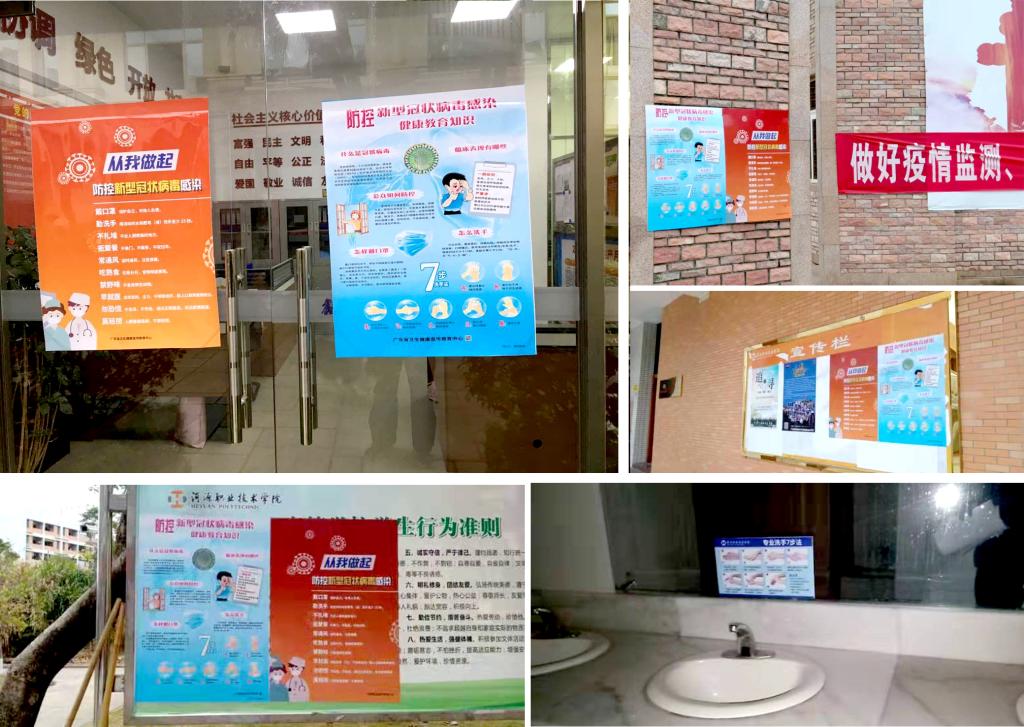 自武汉爆发新冠肺炎疫情以来,我校在东南西门挂防疫情宣传标语,在校园显著位置张贴防疫情海报,在全校公共卫生间张贴洗手七步法,发放防疫指南图书资料和宣传小册子等具体宣传措施,多重举措向广大师生传播疫情防护知识,有针对性的开展师生健康教育宣传工作。