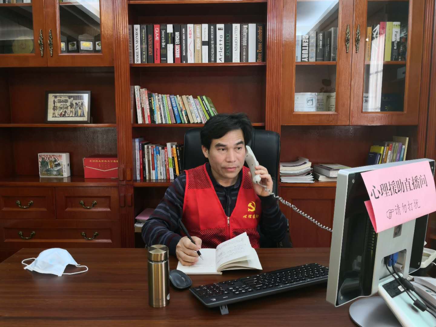钟碧来副教授在教肓部心理援助热线值班
