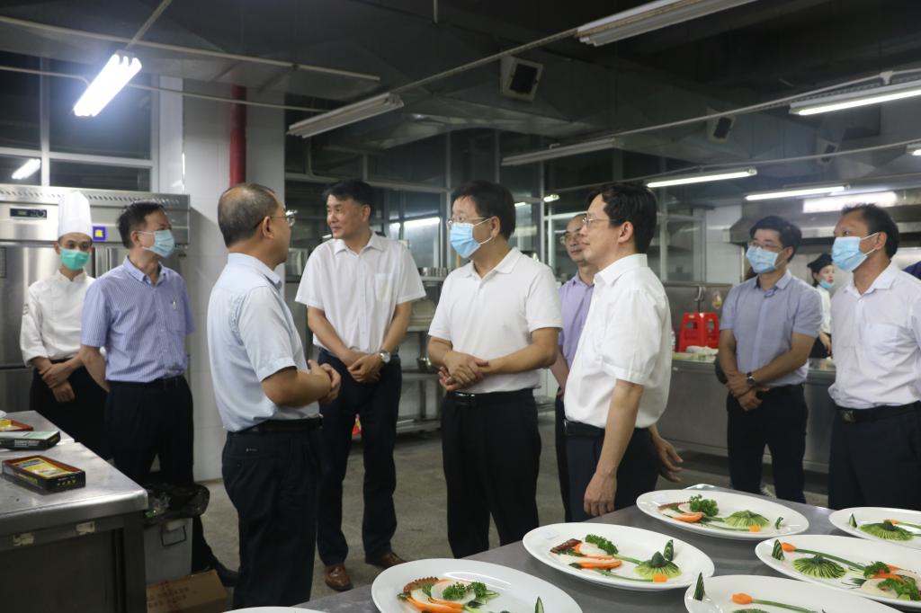 调研组一行先到我校客家菜师傅培训学院进行实地调研,工商管理学院俞彤院长向调研组汇报了河职院客家菜师傅培训学院的建设发展情况,并汇报了烹调专业的招生以及就业情况。听取汇报后,吴善平肯定了客家菜师傅培训学院对全力助推乡村振兴、精准扶贫、宣传河源的饮食文化做出的贡献。