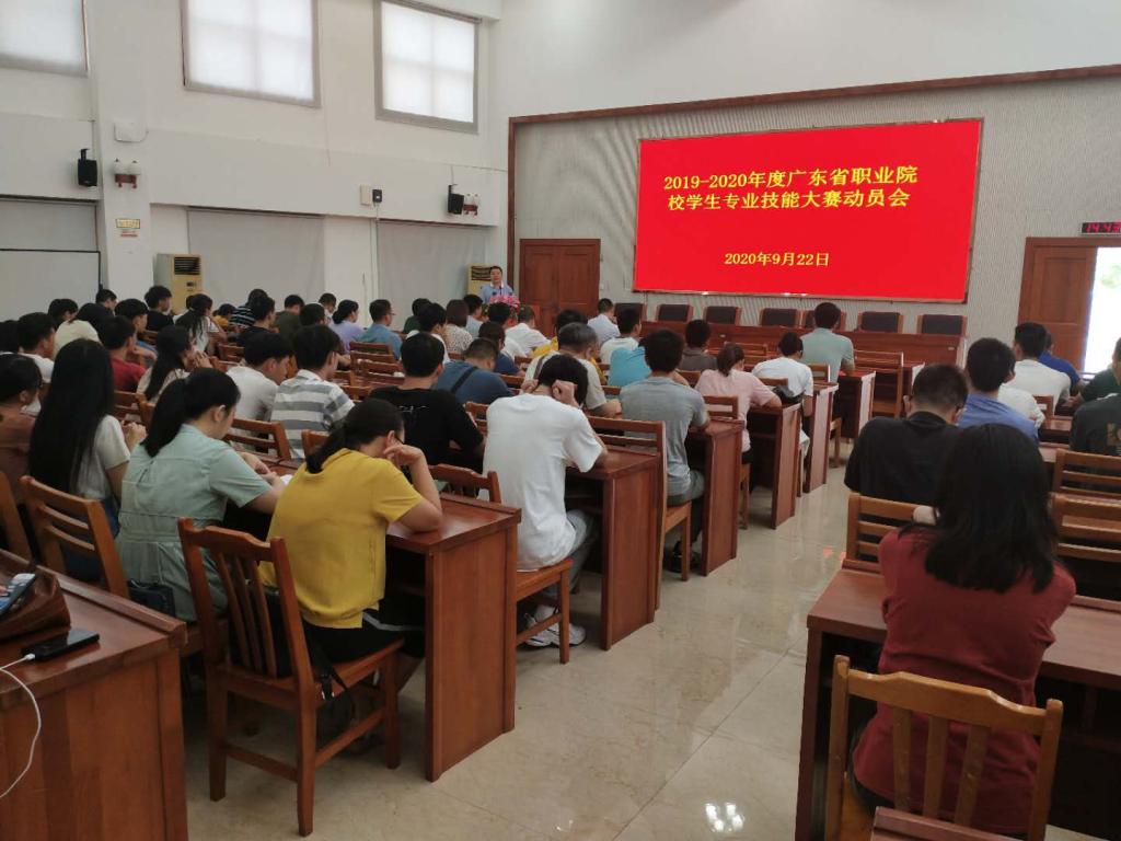9月22日,我校在行政楼C108召开2019-2020年度广东省职业院校学生专业技能大赛动员大会,袁光华副校长、教务处和二级学院相关领导、参加省赛的各代表队指导老师和学生参加了动员会。