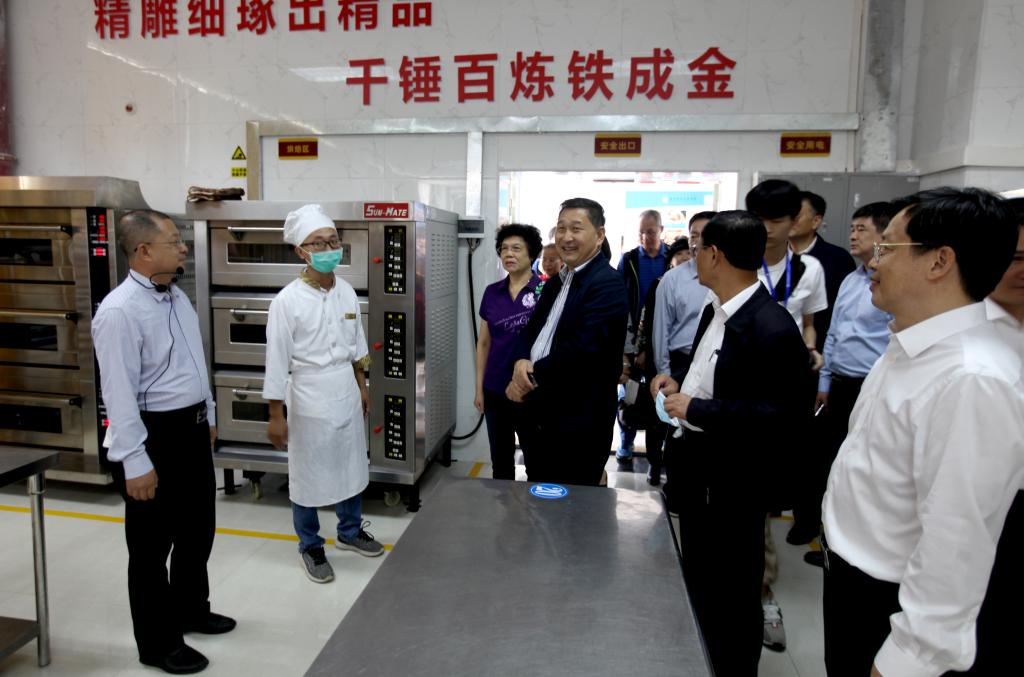 随后调研组到达工商管理学院的烹饪实训室和大益茶艺工作室,工商管理学院俞院长介绍了“南粤客家菜师傅班”的开设情况和大益茶艺工作室、酒吧实训室运行现状。