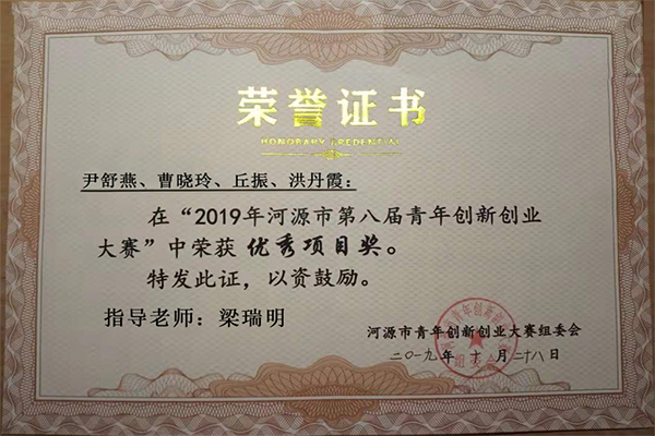 河源市青年创新创业大赛优秀奖