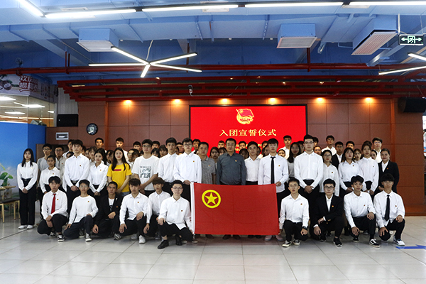 入团仪式在庄严的国歌声中拉开帷幕。活动伊始,由黄志远主任宣读新团员代表名单,并由老团员代表上台为新团员代表佩戴团徽。在学生会副主席吴佛鸿的带领下,全体新团员面对鲜艳的团旗,进行庄严宣誓。宣誓结束,学生干部王俊郑重宣读《团员的权利与义务》,从思想、政治、组织上对团员的言行提出了基本要求。