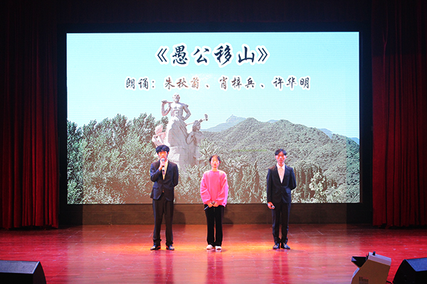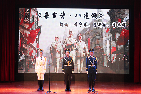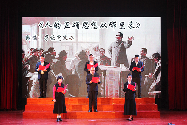 主持人通过毛泽东同志的诞生及事迹引出本次朗诵会的主题。活动以一首《五言诗•挽易昌陶》朗诵开场,紧接着,朗诵者们怀揣着崇敬之情,采用多种形式的朗诵方法及多种呈现形式,纷纷登台进行诵读表演。其中,我校国旗护卫队身着军装,为我们献上充满豪情壮志的《杂言诗•八连颂》,彰显了大无畏的男子气概及中华儿女对社会主义事业的坚定信念;二胡独奏《北京有个金太阳》曲调轻快愉悦、委婉动听,表演者用带有藏族的演奏风格,以乐传情,抒发了对祖国的热爱;学校党政办的老师们带来慷慨激昂、气势磅礴的压轴节目集体诵《人的正确思想从哪里来》。最后,朗诵会在全体人员合影留念中落下帷幕。整场活动带领观众回顾了毛泽东同志的一生,歌颂了新中国逐步走向繁荣昌盛的光辉历程,引发了大家对毛泽东同志的深切缅怀及敬佩。
