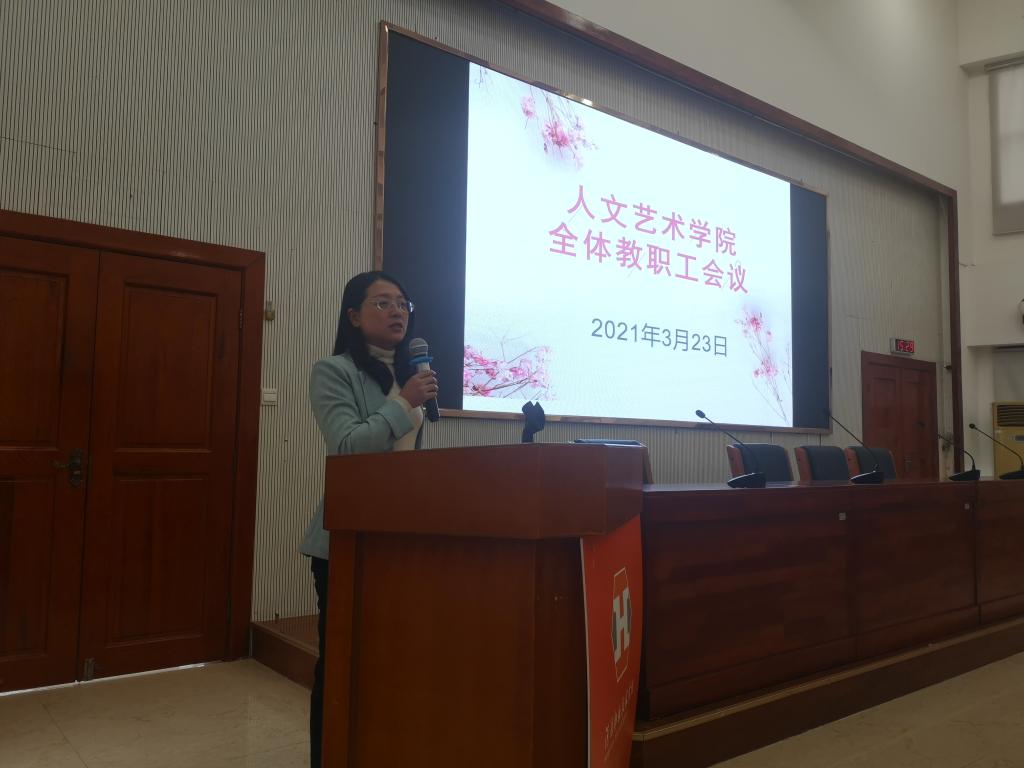 此次会议是人文艺术学院成立后召开的第一次全体教职工会议,会议对保障党建、教育教学等各项工作的有序开展,起到了积极的促进作用。