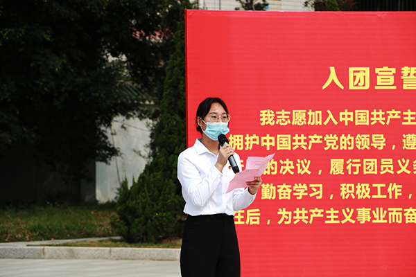 在全体肃立默哀一分钟后,在黄志远主任的带领下,全体师生重温入团仪式。之后陈晓峰书记寄语团员。我国现处于两个百年的重要交汇,作为共青团员要学习贯彻革命先烈忠诚坚定、不畏牺牲、艰苦奋斗、服务人民的优良传统。要弘扬中国精神、走好中国道路、凝聚中国力量,要永葆共产党人的红色基因,用好这一重要法宝,继承和发扬革命先烈的红色基因,不忘为人民服务的历史初心。练就过硬本领,确保我党的事业在红色基因传承中不断发展壮大,向着实现“两个一百年”奋斗目标不断前进。