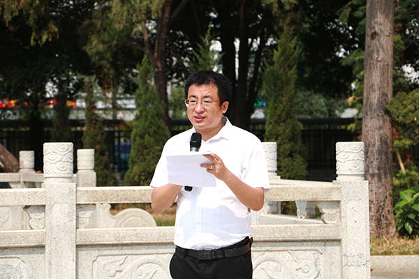 活动在我校国旗护卫队队员为革命纪念碑敬献花圈中拉开序幕,朵朵鲜花表达了对革命先烈的缅怀之情。随后黎丹副书记为革命先烈们挽联致敬,以表达不尽的景仰和追思。紧接着团员代表黄冬婷在纪念碑下发言,她表示我们应该继承烈士的精神,吸收革命先烈们宝贵精神财富中、吸取智慧和力量。学习他们的革命精神和高尚品质,把爱国之情、报国之志化为报国之行。让红色基因融入血脉,让英烈精神薪火相传,共同创造无愧时代、不负人民的新辉煌。为庆祝建党100周年发出青年之声。