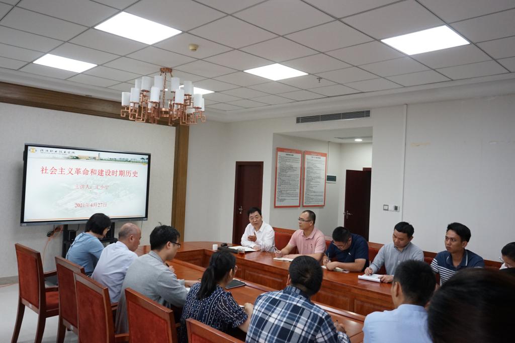 为迎接建党100周年,深入学习党史,凝聚奋进力量,4月27日下午,继续教育学院党总支专题学习社会主义革命和建设时期历史,学校党委委员、副校长王小宁同志主讲,全体党员参加学习,继续教育学院党总支书记李文萍同志主持。