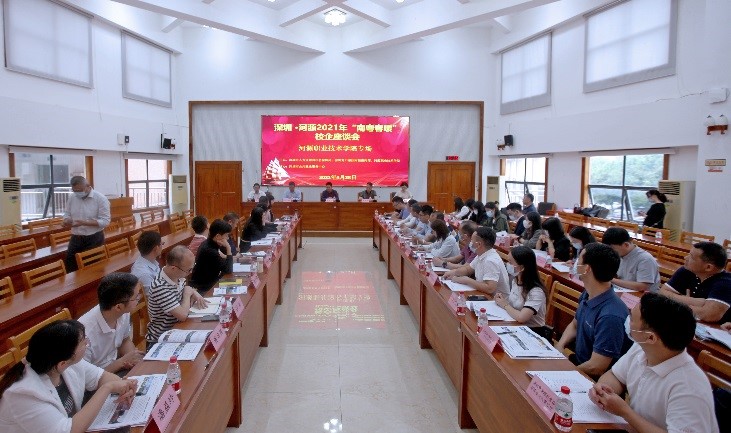 4月28日,我校与深圳企业召开校企合作交流会,共商校企合作大计。深圳市公共就业服务中心副主任凌其良、深圳对口帮扶河源指挥部副组长曾天林、我校副校长袁光华等领导以及24家深圳企业代表,学校科研处、教务处及二级学院相关人员共同出席了本次交流会。