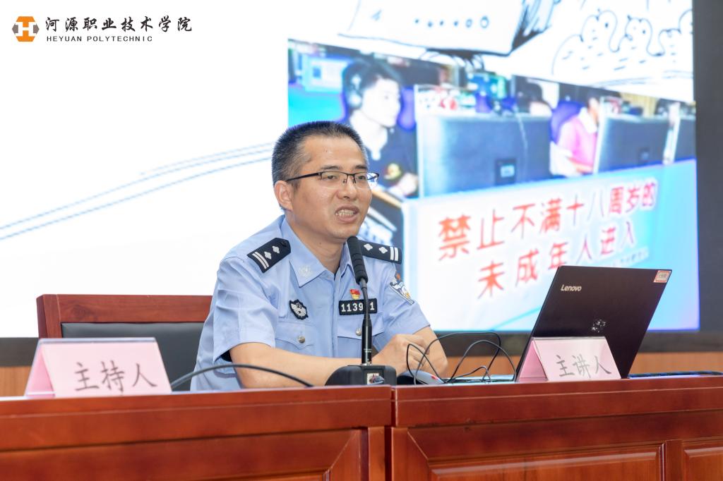 近年来,网络电信诈骗案件高发、频发,为增强在校师生网络安全防范意识,提高防诈骗能力,有效遏制诈骗案件的发生,5月6日下午,学校联合河源市公安局江东公安分局开展了“防范打击电信诈骗暨网络安全进校园宣讲会”主题教育宣讲活动。江东公安分局党委委员、刑警大队长何城辉,江东公安分局网警大队长谢海斌,江东公安分局三级警长曾浩,学校王小宁副校长,保卫处、学生工作处相关人员,各二级学院共400余名师生代表参加了此次活动。会议由学校保卫处处长邓伟昌主持。