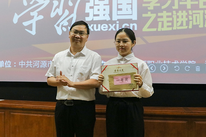为庆祝中国共产党建党100周年,进一步推进学校“学习强国”平台取得实效,持续掀起“学习强国”平台学习热潮,5月11日晚,由中共河源市委宣传部、必一手机登录入口、河源晚报社在我校学术交流中心导游实训室联合举办了学习强国平台宣传进必一手机登录入口活动暨“学习强国”知识竞赛。出席表次活动的人员有校团委书记陈晓峰、市委宣传部理论科科长俞立峰、河源晚报社副社长、副总编辑刘烨洲、团委办公室主任黄志远以及各学生干部代表。
