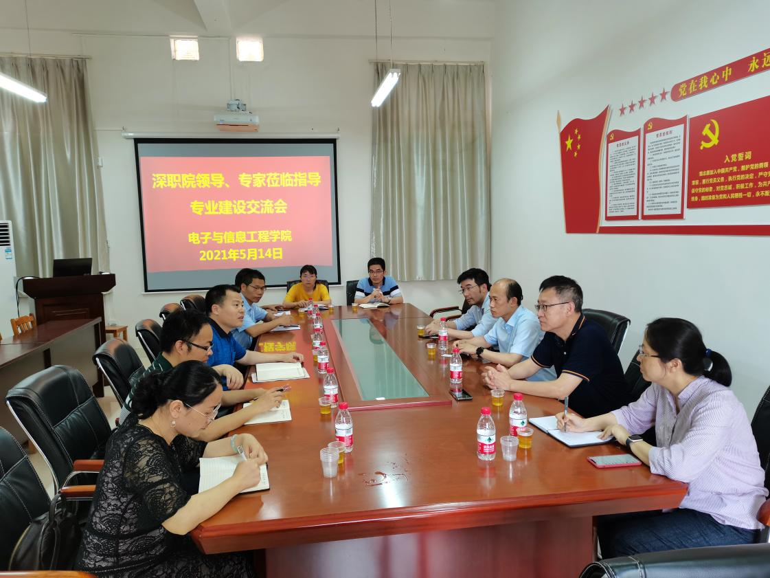 5月14日下午,深职院孙宏伟主任、池瑞楠副院长、肖正兴主任、颜菲主任莅临我校电子与信息工程学院,与二级学院深入交流。专家一行在专业群建设、人才培养、金课建设等方面给予了有力指导,对人工智能应用技术公共课的建设提出了宝贵意见。双方就未来学院合作、专业共建等方面达成了一致意见。