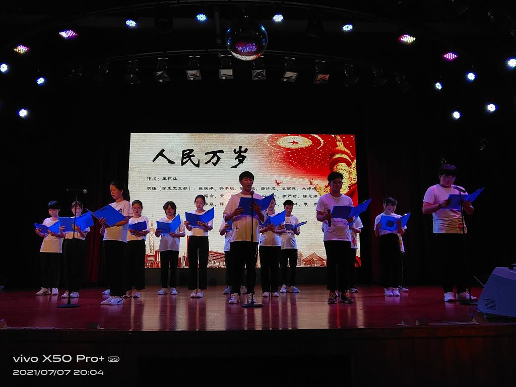 为隆重庆祝中国共产党成立100周年,回顾党的光辉历程,讴歌党的丰功伟绩,继承和发扬党的光荣传统和优良作风,进一步巩固主题教育成果,增强党组织的号召力、凝聚力和战斗力,激励广大党员坚定理想信念,发挥党组织战斗堡垒作用和党员先锋模范作用。我院党总支部于2021年7月7日在艺术演播厅开展庆祝中国共产党建党100周年朗诵音乐会。