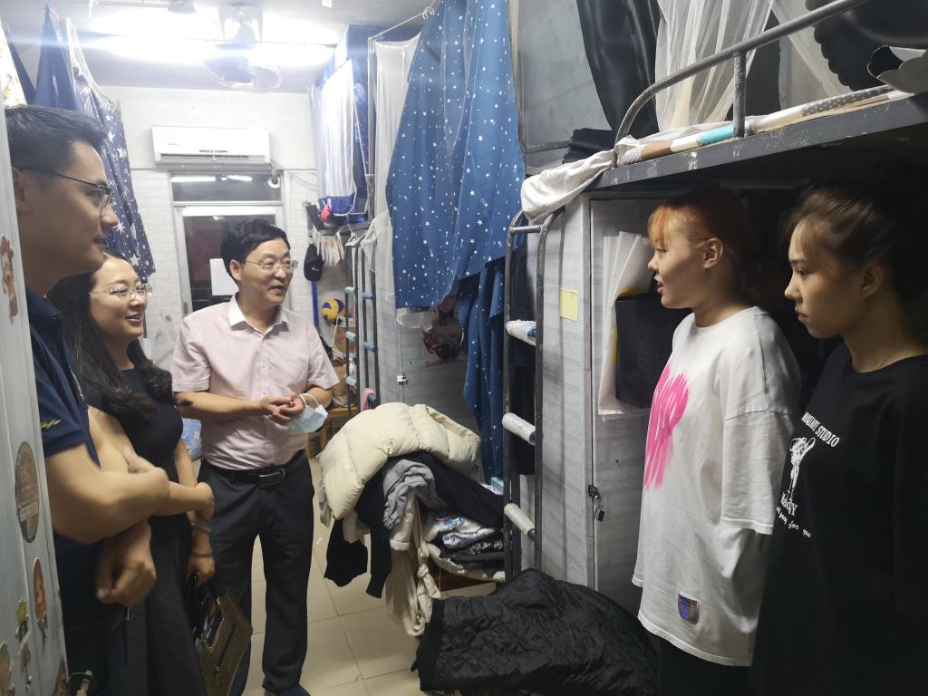 为欢迎毕业生返校,深入了解毕业生思想动态和相关需求,切实加强学生安全稳定工作,7月13日晚19:30,学校王小宁副校长率人文艺术学院班子成员和相关辅导员走访了毕业生宿舍。