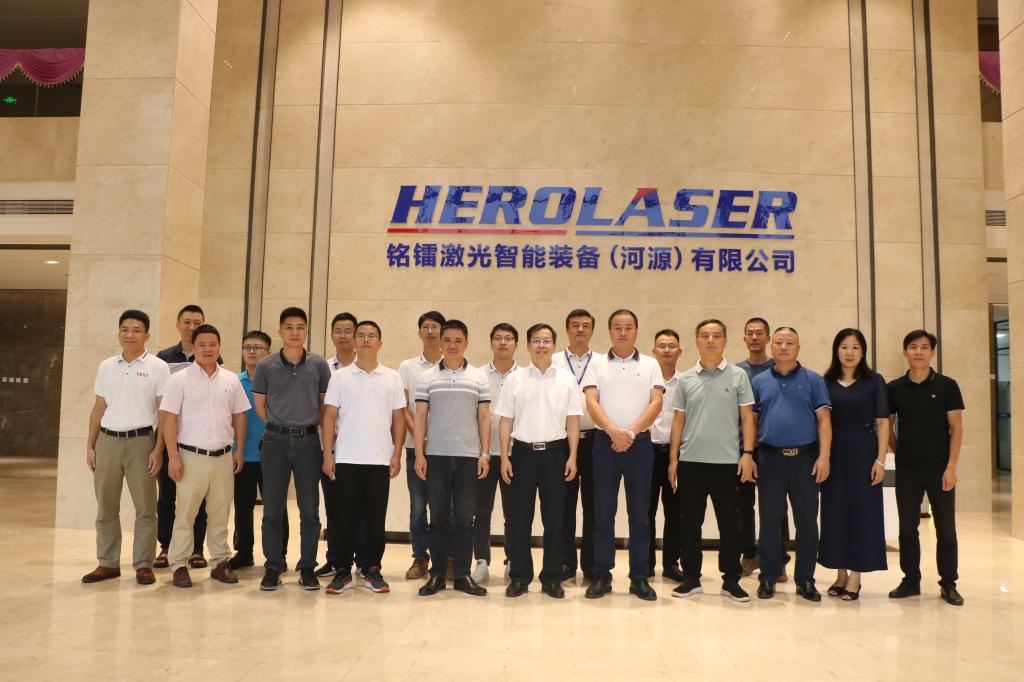 在铭镭激光智能装备(河源)有限公司,韦荣书记一行受到了王余生董事长等企业高管的热情接待。在王余生董事长的引领下,韦荣书记一行参观了企业展厅和生产车间,详细了解企业的技术开发、生产及销售。我校与铭镭激光智能装备(河源)有限公司前期已有深入合作,2019年开始,机电工程学院开始为公司输送优秀毕业生,2020年4月联合申报广东省产教融合型企业建设培育和挂牌大学生校外实习基地,2020年10月进行国家级现代学徒制班人才联合培养和申报广东省教育厅课题,此外,双方还进行专业人才培养计划、课程开发等合作。