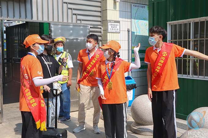 我校迎新志愿者在车站出站口设立了新生接待点,方便新生和家长下站后可以稍作休息,并贴心地准备了饮用水。尽管天气炎热,但我校志愿者们热情不减,依然在新生出站时志愿者及时上前接待和搬运行李,耐心回答家长的问题,并引导新生到接待点进行个人信息登记后,分批次安排车辆接送新生到校报到。
