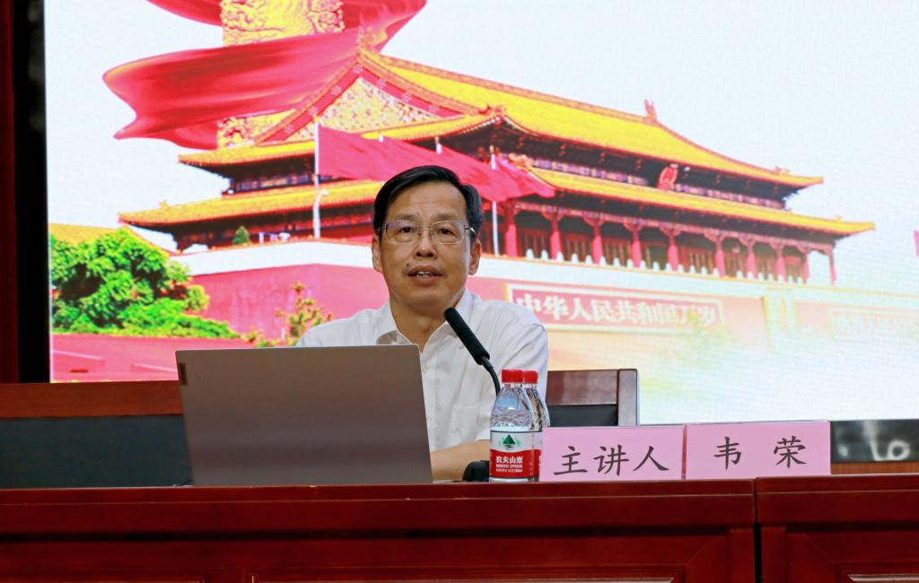 9月18日晚,学校党委书记韦荣同志在学术交流中心报告厅以“新时代中国青年要以实现中华民族伟大复兴为己任”为题,讲授思政课第一课。思政课教师代表、2021级新生代表250余人到场听课。