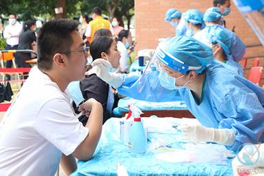 医务人员为参检者取样