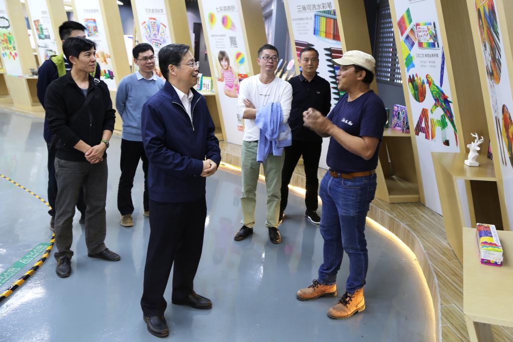 下午,韦荣书记一行先到达云彩实业,在公司领导的陪同下参观了公司的特色美育馆、产品创意中心和产品检测中心等。韦荣书记详细询问了企业的发展情况与人才需求,具体了解了我校高分子专业往届毕业生的工作内容与工作表现。公司负责人介绍了公司的主要产品与特色,产品的研发流程等,对我校高分子专业往届毕业生的工作表现给予了高度评价,希望我校未来输送更多吃苦耐劳的技术骨干。
