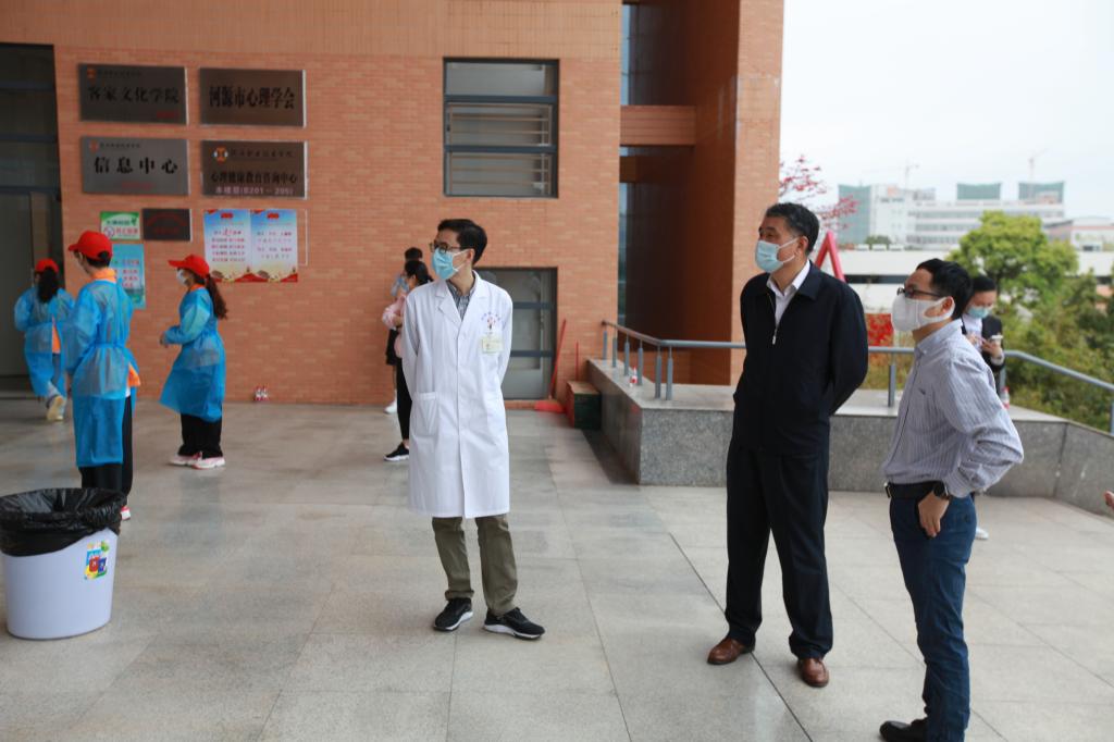 校党委书记韦荣,党委副书记、校长陈德清,党委副书记、纪委书记叶国英、副校长赖小景、王小宁、袁光华等校领导以及各职能部门负责人深入核酸检测现场,实地查看采样点区域划分、检测工作流程、服务保障、防控措施落实等情况,并看望慰问医护人员和志愿者等工作人员,要求全校各单位要按照属地管理部门的最新要求,以分秒不能等、分毫不能差的行动,从紧从严落实疫情防控各项举措,全力打好疫情防控阻击战。
