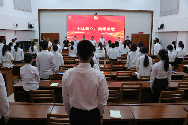 在庄严神圣的国歌声中,开班仪式拉开了序幕。首先由新学员代表李佳帆上台发言,他表示青春寄予希望,青年创造美好未来,时代造就青年,盛世成就青年。广大青年在中国共产党的旗帜下,用奋斗和拼搏,创造了无愧于祖国、无愧于人民、无愧于时代的光辉业绩,赢得了党和人民的高度赞誉。无论是过去、现在、还是未来,中国青年始终是实现中华民族伟大复兴的先锋力量。习近平总书记说过“一代人有一代人的长征,一代人有一代人的担当!实现中华民族伟大复兴是一场接力跑。”我们已经握好了时代的接力棒,决心为实现中华民族伟大复兴注入源源不断的青春力量。随后,由出席的老师们为青马工程培训班学员代表授书。接着,由陈晓峰书记进行发言,他指出,作为新时代青年,我们要以‘胸怀大我’的爱国情怀,以超越自我的奋进姿态,认真践行请党放心、强国有子我的青春誓言,在实现中华民族伟大复兴的时代洪流中踔厉奋发、勇毅前进。最后开班仪式在全体人员激情澎湃地齐唱团歌后圆满落幕。