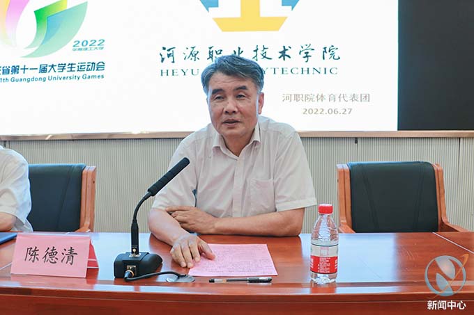 校长陈德清对全体运动员、教练员表示祝贺与感谢。他表示,我校高度重视体育教育工作,积极倡导“无体育、不河职”的体育精神,此次广东省大学生运动会成绩的历史性突破,必将激励我校师生更加积极地参与各项体育运动项目,不断树立和践行“我运动、我阳光、我健康”的体育观念。他为赛场上努力拼搏的教练员和运动员点赞,勉励大家作为学校体育运动的种子力量带动全校兴起体育运动之风。