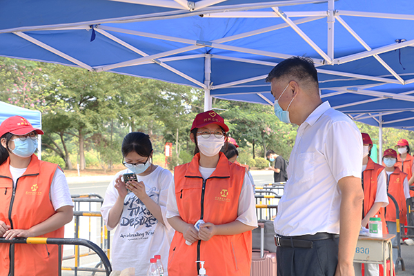 返校前,志愿者参加志愿服务工作培训会,在会上明确了志愿者管理、分工、志愿服务时间、地点以及要求等相关内容,也多次强调在志愿服务返校学生的同时,志愿者们务必要做好自我防护,并服从学校统一安排,勇敢地站在校园防“疫”第一线,为顺利返校提供志愿服务。工作中,志愿者遵循疫情防控要求,毫不懈怠,检查返校学生的粤康码、行程卡,并给学生测体温,检查无误后方可入校。