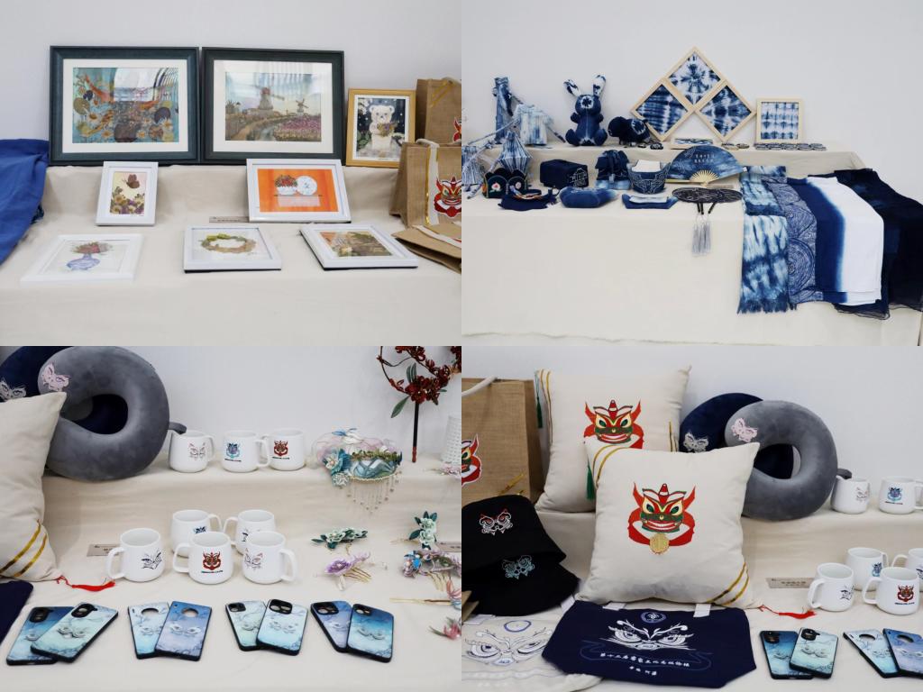 论坛首次设置客家文创设计作品展,上百件充满客家元素的设计作品在论坛展出。这些作品主要出自人文艺术学院师生之手。当中有和平墩头蓝文创产品、猫头狮、拇指龙文创产品、客家传统服装服饰设计、动漫设计、平面设计作品等。记者在现场看到,展览还设有压花书签的制作体验环节,与会者和市民可以现场体验压花、封印、吊穗等。