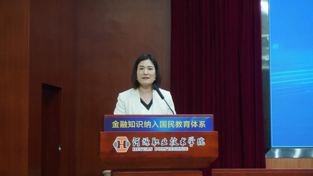 徐飞霞会长致辞时表示,过去一年河源市金消协与河职院双方就大学生金融素养、风险防范意识、金融知识纳入国民教育体系及金融实践等领域开展了多次讨论,今后将会继续加强与学校、金融管理部门、教育行政管理机构、金融机构等的沟通联系,期待与各单位一起努力,加强产学融合和校企合作,不断适应新形势新要求,携手把金融知识纳入国民教育体系这件实事办好。