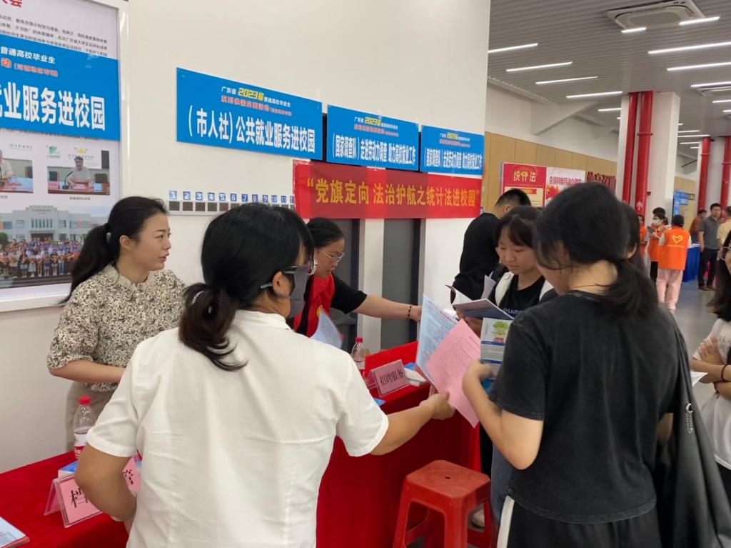 联合河源市人社局、高新区人社分局、妇联组织、国家调查队河源分队等部门,在本次活动现场开设五大专区,突出了我校服务地方经济社会发展的办学职能,彰显了我校为河源当地提供高素质技能型人才的责任担当,收到了良好的效果。其中,“高新区企业专区”汇聚40家高新区企业参会;“公共就业服务进校园”专区、“法治知识进校园”专区、“巾帼专区”、“简历诊断与咨询服务”专区现场为毕业生提供就业创业政策咨询服务、劳动权益保障相关法律法规宣讲、简历诊断与优化服务,帮助毕业生更高质量就业。